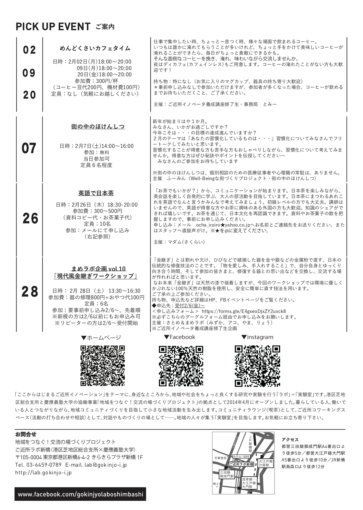 ※天候などやむを得ない事情により急遽予定変更する場合もありますが、その際はホームページ、フェイスブックページ等で改めてご案内いたしますので、どうぞよろしくお願いします。