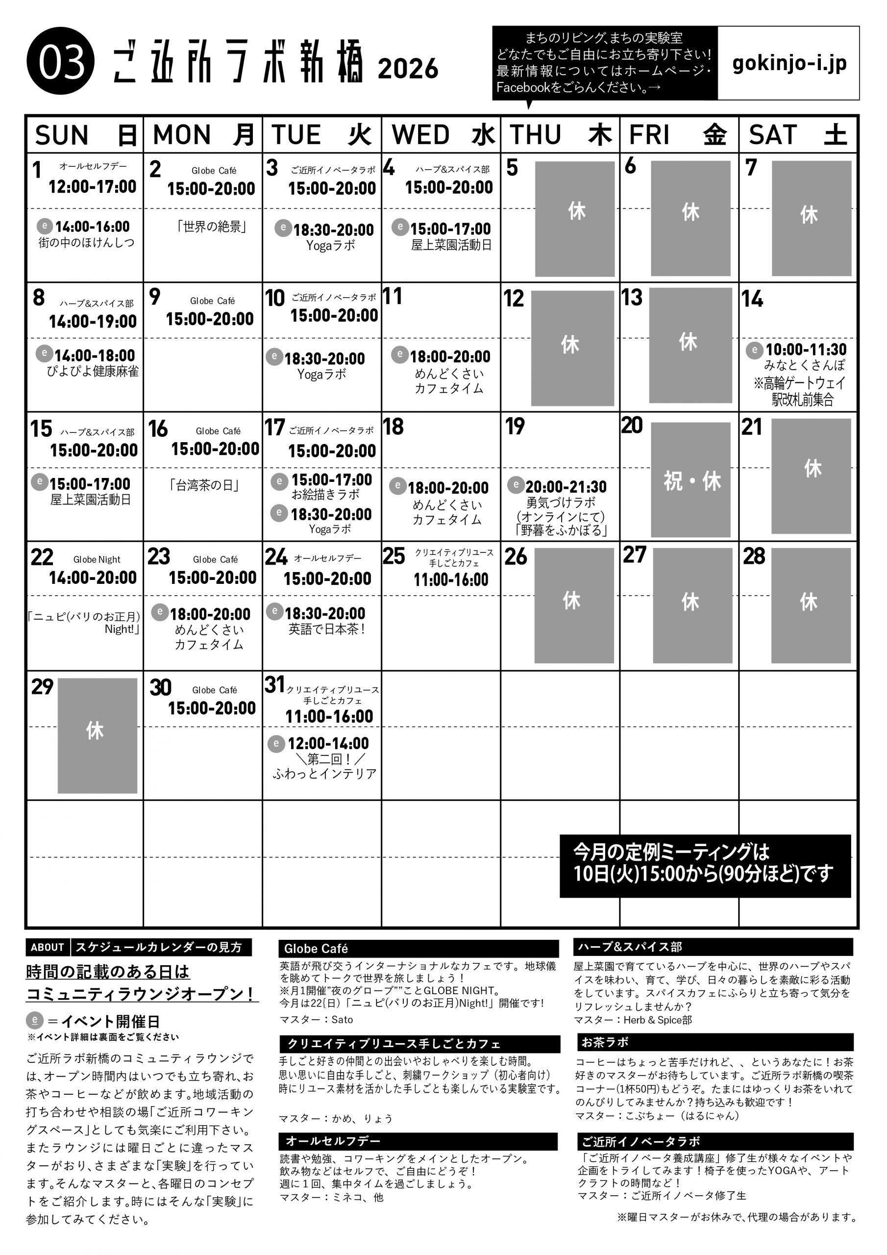 ご近所ラボ新橋カレンダー